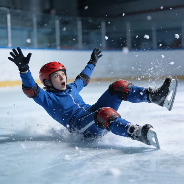 正確摔倒姿勢:滑冰難免摔倒,掌握正確姿勢能減少受傷。摔倒時,身體微微前傾,用手撐地時彎曲手肘,避免直臂著地傷及手腕;若向后摔倒,盡量用臀部著地,同時縮成一團,減少沖擊力。