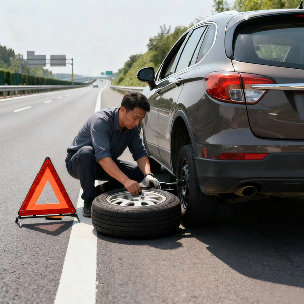 4. 快速處理:盡快完成輪胎更換,并盡快駛離應急車道。