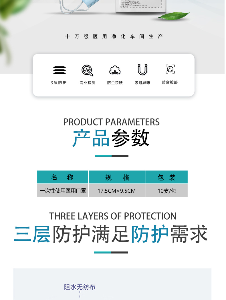 【適用范圍】一次性使用醫用口罩適用于佩戴者不存在體液和噴濺風險的普通醫療環境下的衛生護理。